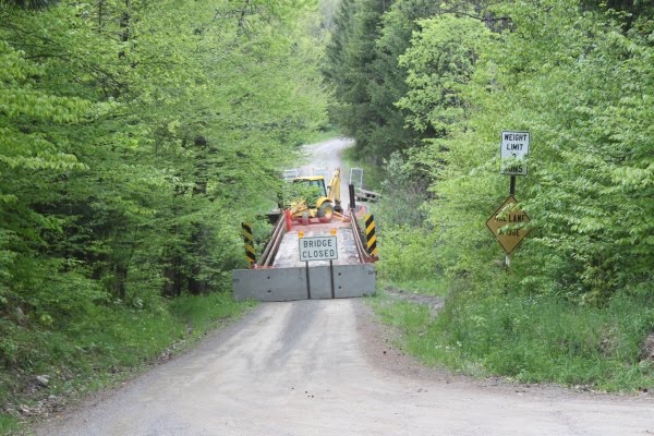 The county road crew tore the bridge apart and worked on it, maybe two days. Now it is sitting there day after day not being fixed and not able to be used. So I am hoping they remember they took it apart and maybe get back to work on it. It is not like it is never used or only by us. There is a constant amount of traffic lately that comes down Ludlow Road from Lake Ludlow. Then they have to either turn around and go back, or take the long way around, which is past our house on the way toward Oxford.